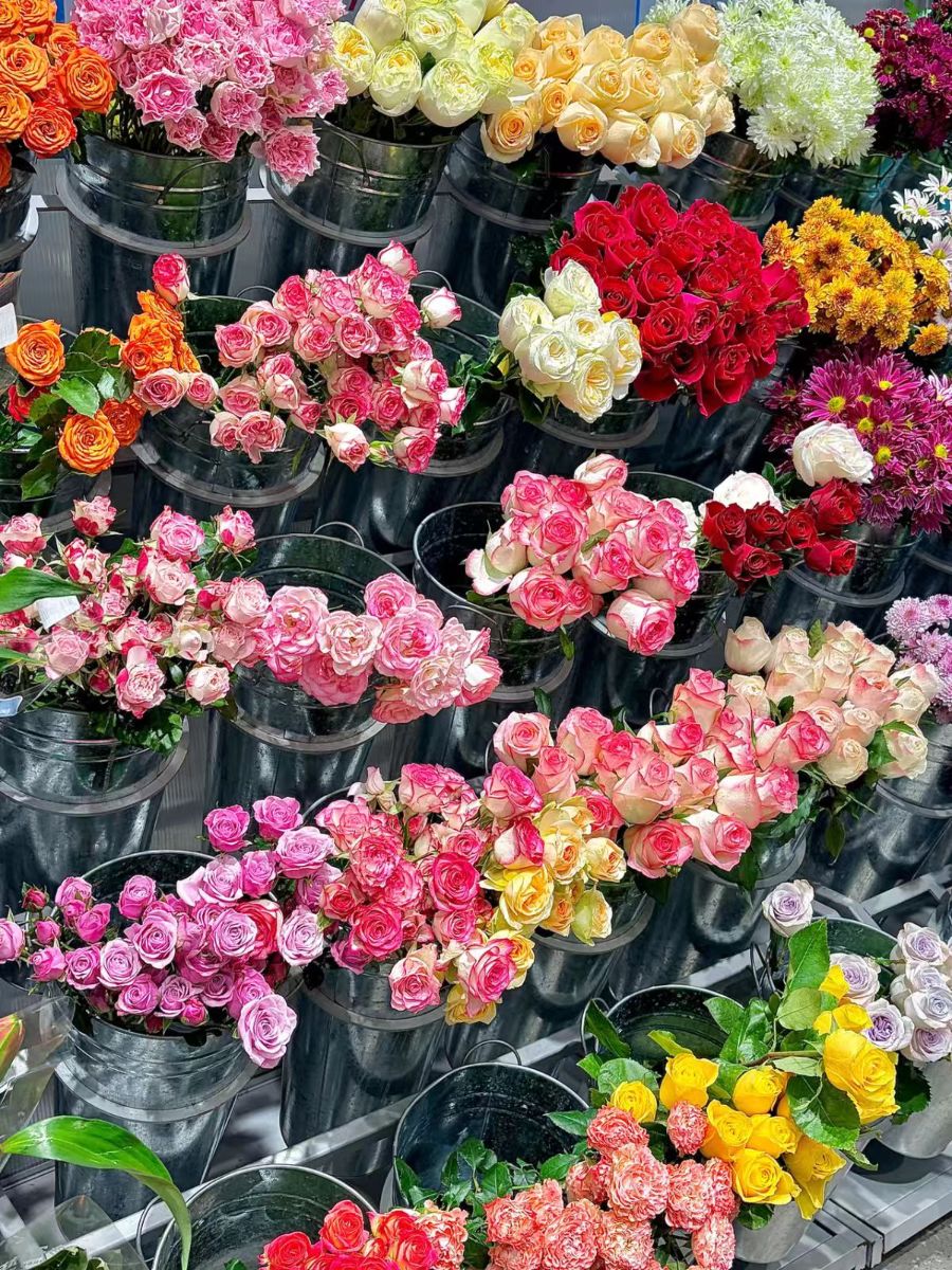 这哪里是花摊,是把四季的盛放在这里攒成了一捧捧鲜活——随便拎起一桶,都是裹着香的浪漫。