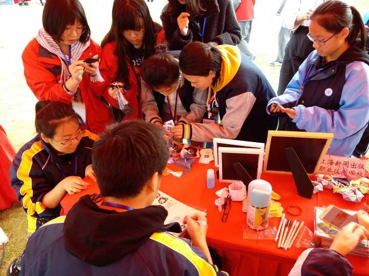 2018年11月17号,在市教委组织下,“青春放歌”十周年上海市中等职业学校学生文化社团展示在东方绿洲正式开展。我校也派出了手工社与制章社作为我校优秀社团代表进行展示。