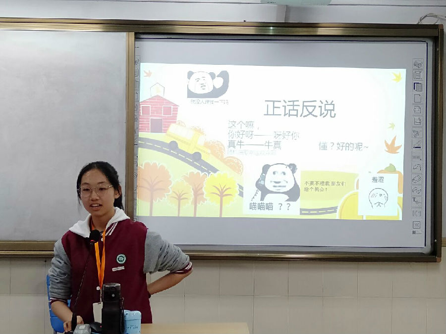 这一周是我们在商会校的第11周,上周我们进行了紧张的期中考试,这周我们开展了放松愉快的班会活动,主持人就是我们的缪润同学。课上我们举行了三个有意思的小活动,同学们也都在积极地参与着活动,总的来说这节班会课同学们过的很愉快!