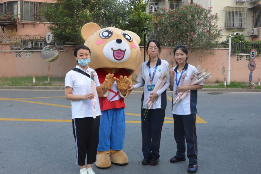 虽然教师节当天天气闷热,但是并没有一位同学感到辛苦,他们怀着感谢的心情,一边对教师热情地说:“老师,祝您教师节快乐!”,一边将手中的鲜花送到每个教师的手中。憨态可掬的易班熊时不时向教师们招手,接过鲜花的老师都向同学们表示感谢,脸上洋溢着灿烂的笑容,一些老师还欣喜地与同学们合影留念。