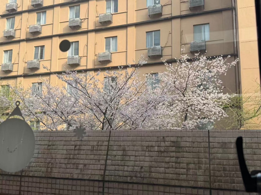 窗外的樱花,是教室一隅的温柔风景。隔着一层玻璃,便能望见墙后盛放的花树,枝桠缀满细碎的白,如云似雪,在暖黄色的楼前晕开一片轻软的春意。