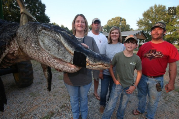 美国一家5人捕获4.57米长鳄鱼 或创世界之最