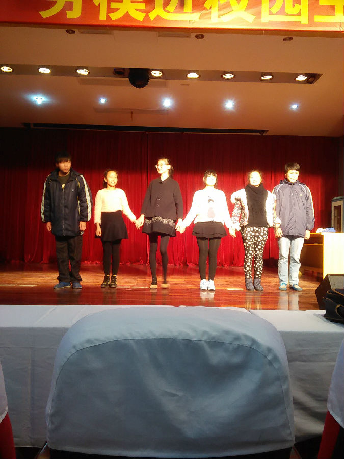 下面的图是播音主持社团的同学们正在彩排的情景,期待他们在社团文化节上的精彩表现!